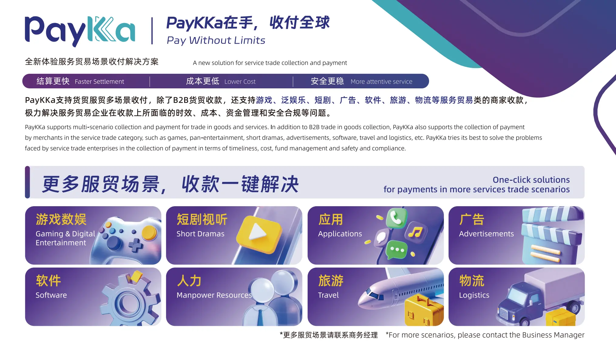 To further support service trade enterprises, PayKKa recently launched a dedicated campaign for digital entertainment exports. The initiative covers payment needs across: